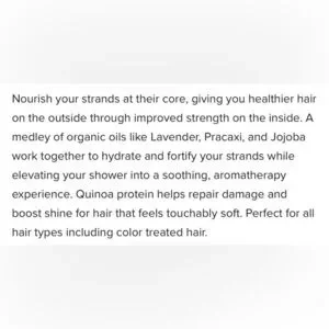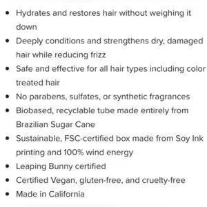 Hydrates and restores hair. Made with certified organic and 100% natural ingredients, including coconut oil and quinoa protein.