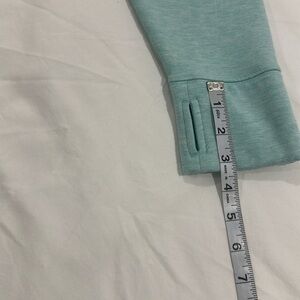 Stylish light blue pullover with white stripes. Features a quarter-zip design. Super soft and comfortable material. Wore a handful of times.