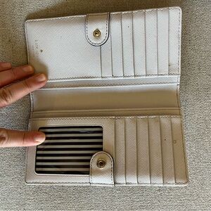 Gently used Kate spade wallet. Piece on zipper is missing but works just fine. See pictures!