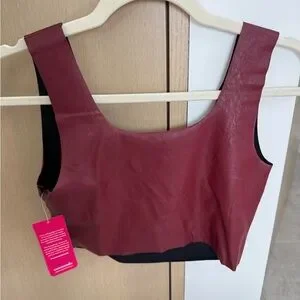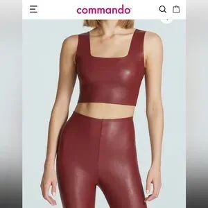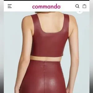 Commando Women's Burgundy Faux Leather Crop Top sz M. NWT