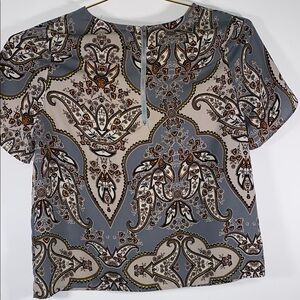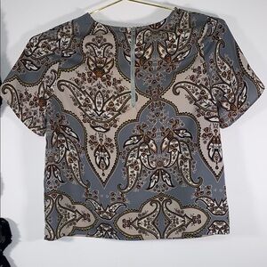Elegant short sleeve top with a classic paisley design. Perfect for a stylish look.