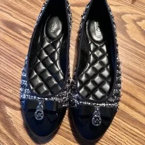 Step out in style with these Michael Kors black tweed ballet flats. Perfect for any occasion, these shoes offer both elegance and comfort.