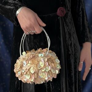 Little purse / sparkly fun flirty / peach iridescent sequins / day or night zest