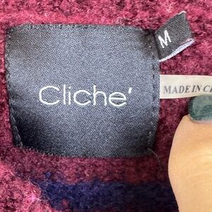 CLICHE' Bold Color Mock Turtleneck Striped Pullover Sweater / Size Medium