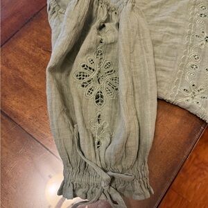 American Eagle Outfitters Green Puff Sleeve Crop Blouse