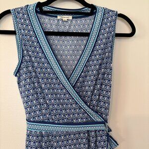Max Studio Sleeveless Blue and White Print Stretch Wrap Dress, Size XS