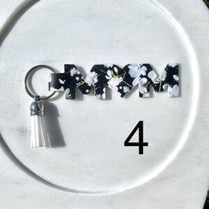Handmade black and white floral “MOM” keychain