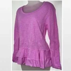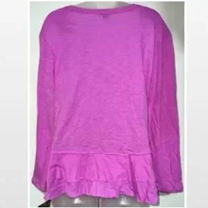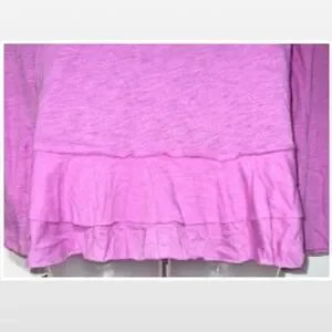 New Small Bright Pink Ruffle Hem Long Sleeve Top