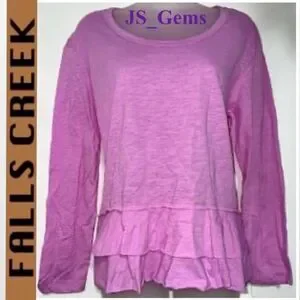 NWT Falls Creek small ruffle hem high low soft pink long sleeve blouse. Features a cute bottom frill & a light weight stretchy fabric. Approx. arm pit to arm pit 20”, arm 21”, front 24”T, & back 25”T. Ask any questions before purchasing. Enjoy buying from an Ambassador. Same or Next Day Shipping 🎁 Make an Offer to Save 😊💕 or Bundle 3+ items to get FREE shipping! 🎁 All sales final & sold as is