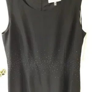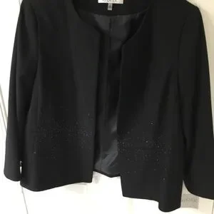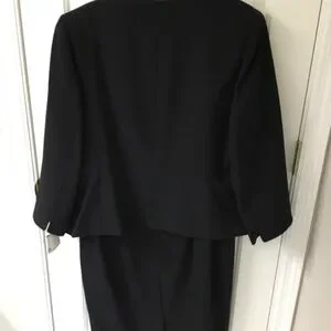 Kasper Black Sheath and Short Jacket , Black Beaded Design on Jacket and Dress, Dress is just below the knee in length, Jacket is Open Front and NWT, Dress is excellent condition, only worn one time., SZ 16, Elegant and Appropriate for Formal or Cocktail Events