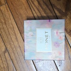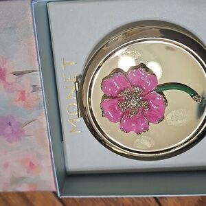 Monet Compact Double Mirror Gold Tone Pink And Crystal Flower