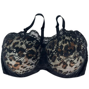 Smart & Sexy Cheetah Print Black Lace Mesh Bra Adjustable Straps Underwire 38D