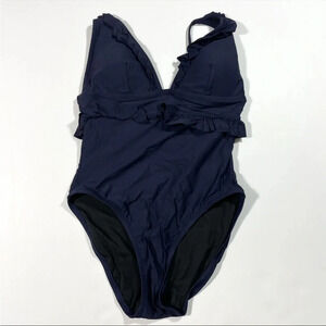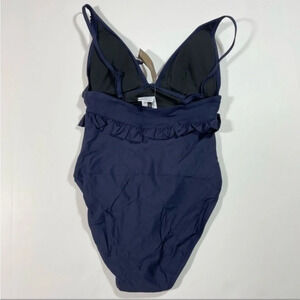 New J Crew Ruffle Deep V One Piece Swimsuit Blue