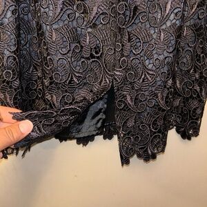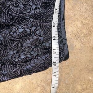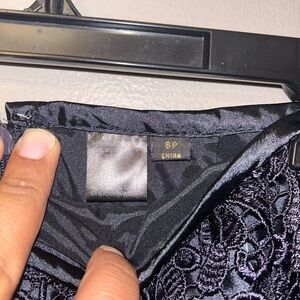 Navy crochet lace overlay skirt; dressy satin lined