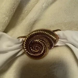 Elegant white strapless swimsuit featuring a stylish gold accent. Perfect for beach days.