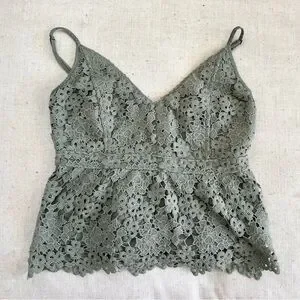 Olive green floral lace tank from Abercrombie & Fitch. Adjustable straps. Size M. 100% polyester.