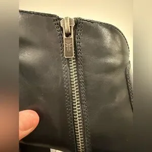 Excellent preowned condition pair of Frye Jennifer black leather ankle booties. Size women's 9.5. 2.5" heel height. Zips up the medial side. Minor scuffs and wear but overall these are in great condition. See photos for details and condition.