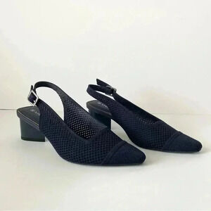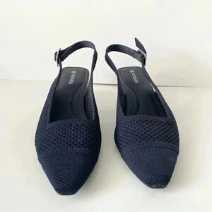 Vivaia Leah Pro Navy Blue Knit Slingback Pointy Toe Pumps 37