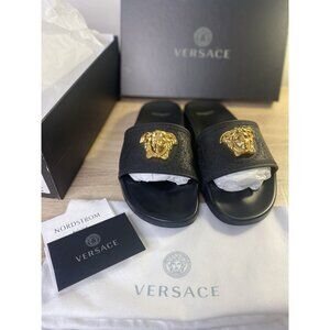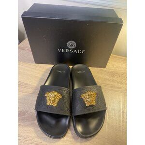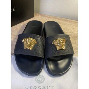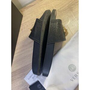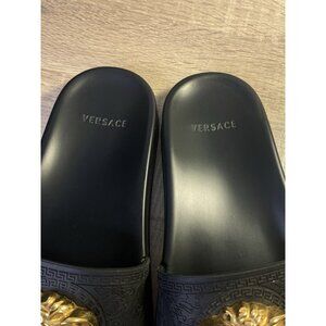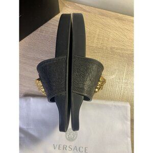 Versace Pool Slide Gomma Black with Gold Medusa Women Size 40 (US 10) Authentic