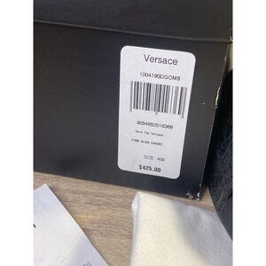 The Versace Pool Slide Gomma in Black with Gold Medusa is a stylish and comfortable sandal designed for women. With a slip-on closure and rubber upper material, these slides are perfect for casual or travel occasions during the summer, fall, or spring seasons. The iconic Versace logo accent adds a touch of designer flair to this authentic pair of sandals in size 40 (US 10). Ideal for those looking for a chic and trendy footwear option.