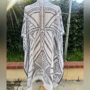 Elegant shawl with a gray and white pattern. Perfect for layering.