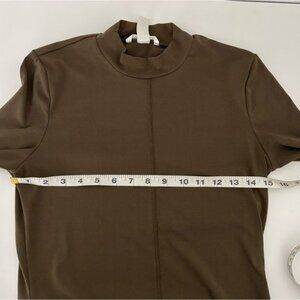 Features/Accents: Olive Green Color, Midi Length, Long Sleeve, Mock Neck, Fitted Dress, Stretch, Earth Tone, Neutral, Can Be Dressed Up Or Down, Fitted Silhouette, Full Coverage Yet Form-Fitting for a Sophisticated Look, Subtle Lettuce-Edge Hem Adds Delicate Touch, Comfortable