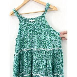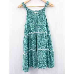 Lucky Brand Ditsy Floral Tiered Mini Dress Small Spring Blue Green Cottagecore