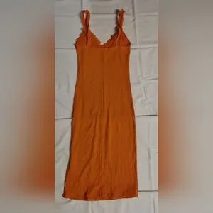 Zara Women's Orange Ribbed Knit Midi Sleeveless Dress S