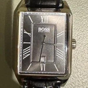 Boss Hugo Boss watch. Stainless steel. Was not worn often. Original strap with minimal creasing as seen in photos. Still in good condition. Recently put a new battery in.
