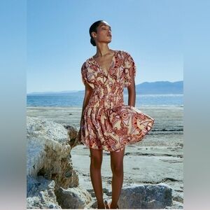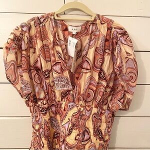 NEW A.L.C Luna Smocked Dress Nude Peach Multi 12