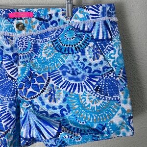Lilly Pulitzer Adie shorts in the Seasalt Blue On Parade pattern, size 14.