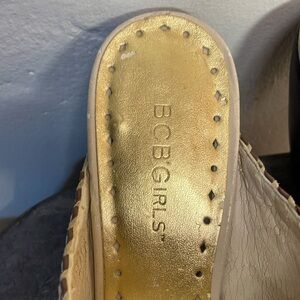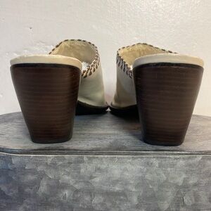 #1171 BCBGirls Off White and Brown Mules w/ Stitched Leather Design-7