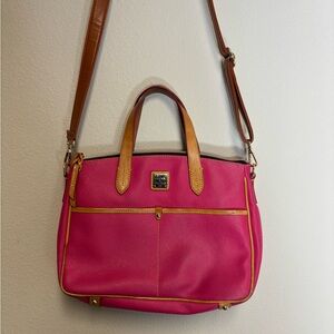 Stylish and vibrant, this Dooney & Bourke pink leather tote bag is perfect for any occasion. Crafted with quality materials, it offers both elegance and functionality.