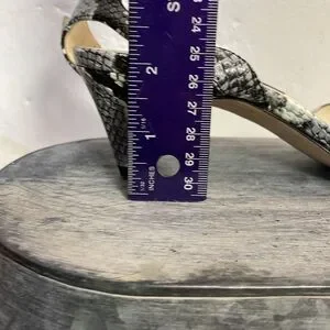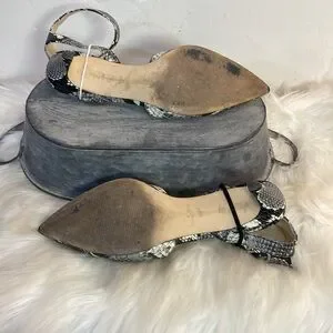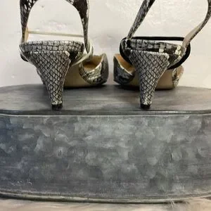 #0172 Nine West Black and Gray Snakeskin Low Heels with Wrap Ankle Strap-6.5