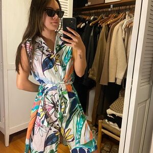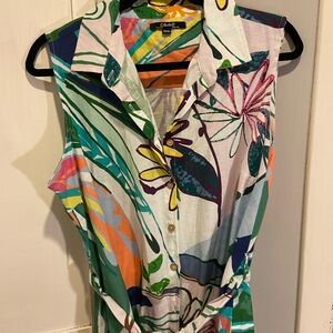 Embrace vibrant style with this sleeveless floral dress. Perfect for any occasion, it features a multicolor design that adds a pop of color to your wardrobe.