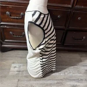 This tank top by White Stag features a boxy silhouette with classic black and white stripes. The sleeveless design and soft fabric make it a comfortable choice for casual wear. Its simple yet stylish look is perfect for pairing with various outfits.