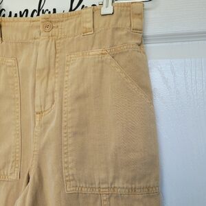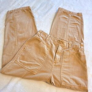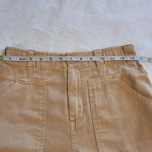 100% cotton. Button and zip closure. Large hand pockets and 2 back pockets. High rise with a straight leg. Good condition. Size 4. Please compare measurements to something similar to ensure fit.