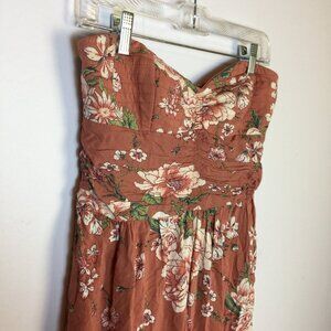 Band of Gypsies Strapless Jumpsuit Size L Womans Mauve Pink Floral Light Padded