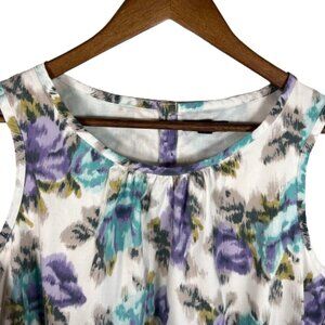 Lands' End Womens Cotton Sleeveless Watercolor Floral Dress Sz 12 Summer Pockets