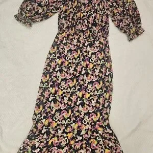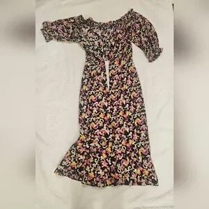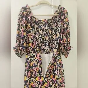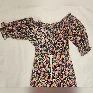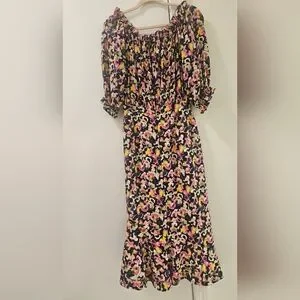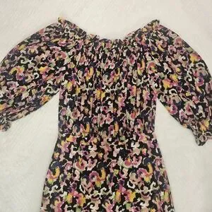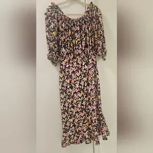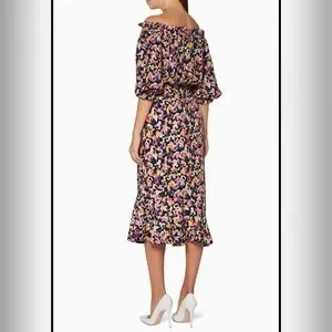 Saloni Multi-Colour Grace Dress Off-Shoulder Midi Dress Size 2