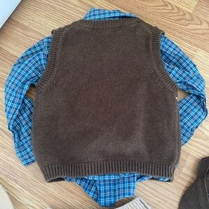 Janie and Jack outfit with two hats 12-18months. Outfit is in excellent condition. The only flaw is pants have a small light stain on the back-see last photo.