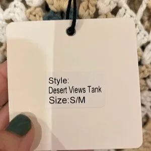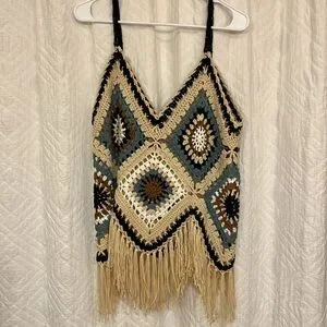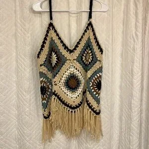 NWT, size small/medium, tank is similar to stock photos, super cute crocheted tank with fringe bottom, oversized fit, PTP is approximately 20”