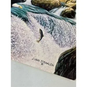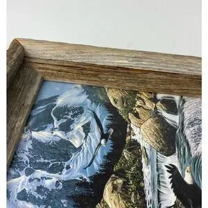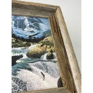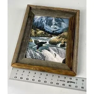 Preowned and in good condition. Wooden frame is a bit rustic looking. Heavy duty! The print has been cut but still shows copyright by John Van Straalen. Frame measures 13in L x 11in W x 1.5in D. Ready to hang! See all photos for actual condition.