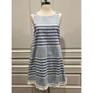 🔥SALE Vineyard Vines Dress Striped fringed Linen Cotton A-line shift sz 8 lined