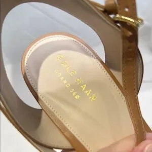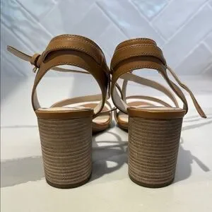 Gorgeous heel sandal from Cole Haan. Step out in style with these elegant tan strappy block heel sandals. Perfect for spring and summer! In very good condition, some wear as shown in pictures.