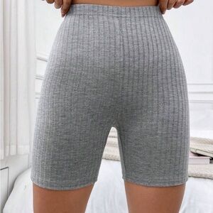 Shein Moosta solid rib knit biker shorts gray
