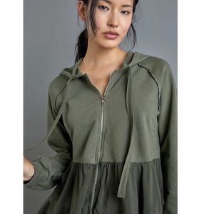 Anthropologie Lavande Tunic Full Zip Hoodie Jacket in Moss Green NEW WITH TAG