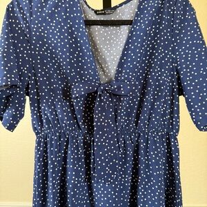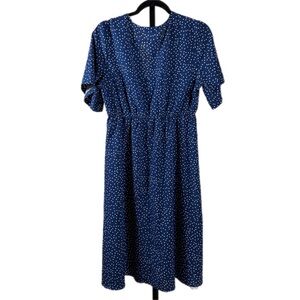 SHEIN Large Navy Blue Polka Dot Boho Wrap Dress Feminine Flowy Summer Midi