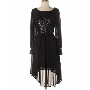 Gianni Bini Black Sequin Hi-Low Cocktail Dress | Long Sleeve | Size 5