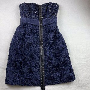Badgley Mischka Navy Blue 100% Silk Ruffled Beaded Strapless Corset Dress NWT Size 4